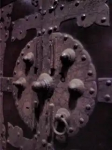 又、箪笥の金具は、地元の上巻地区で打たれていた独特の、手打ち金具が使用されていました。この金具には鉄、銅、真鍮等を用いて、薄いタガネによる細やかな透かし彫りを施すという大川独自の手法を用いて、錺(かざり)金具や家紋入りの金具が造られていました。特に取り外し式の丁板が開き戸には使われていましたが、他の産地には見られない大川独自の特長ある金具と言えます。