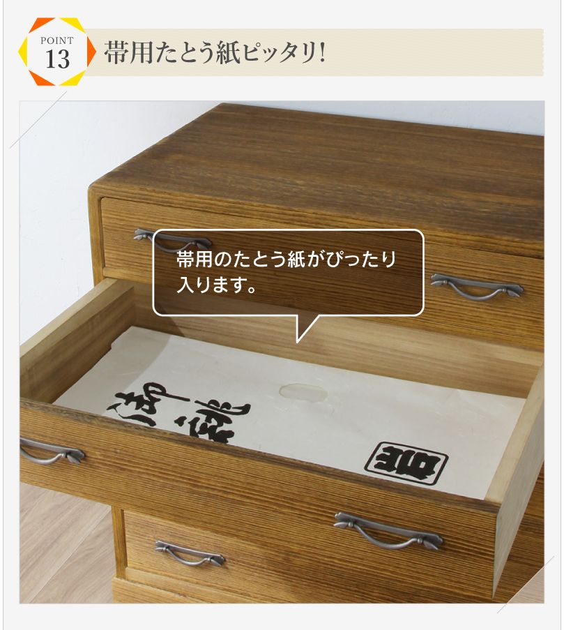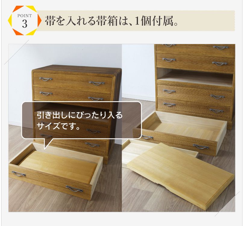 着物の帯専用の桐タンスですが、洋服やランジェリーの収納にも適しています。